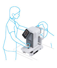 Když je tryska příliš blízko pacientova oka, spustí se alarm a na monitoru se zobrazí nápis „Too Close“. Funkce bezpečnostní zátky navíc zabraňuje kontaktu s okem pacienta.
