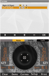 Hodnota IOP je korigována automaticky pouhým zadáním centrální tloušťky rohovky. To lze snadno provést před nebo po měření.